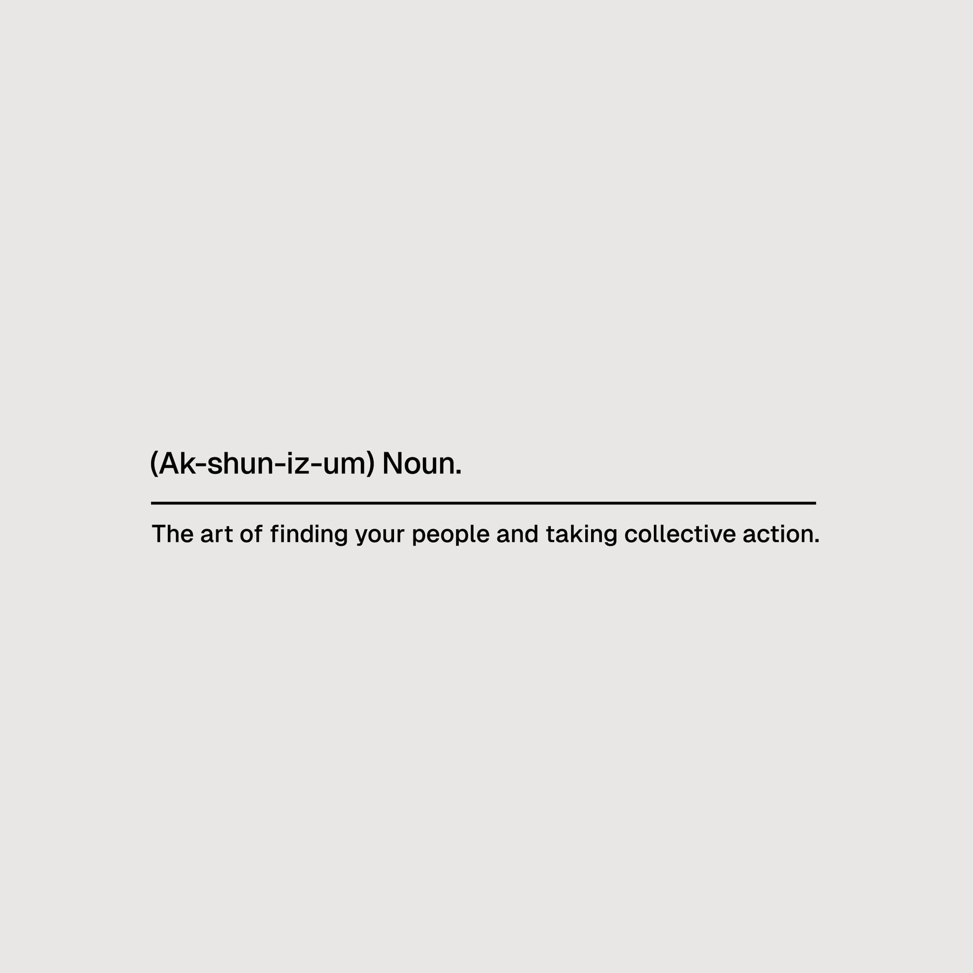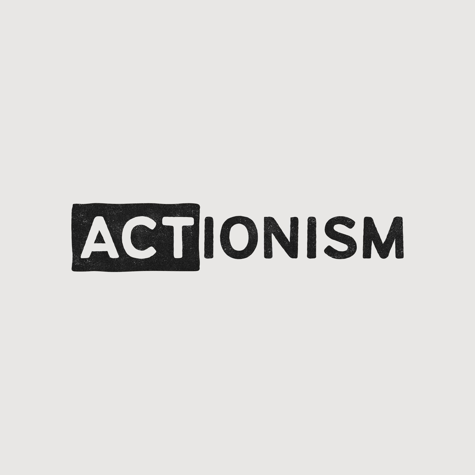 "For the ACTionism typemark, I wanted the letterforms to feel natural and hand-drawn, with a bit of imperfection to make them more human. I focused on putting the strongest emphasis on ‘act’ because it’s the act of doing and making change that shifts us from passive consumers to active citizens. Framing it in a container made it punchier and gave it a vibe that connects to activism and protest signs."