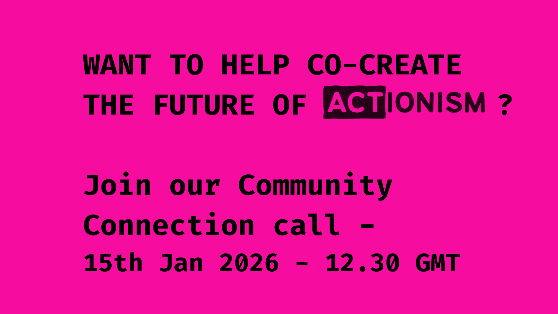 If you believe ACTionism needs to exist right now and you have skills or ideas you'd like to share, please join this call: 12.30 - 1.30 on Jan 15th.